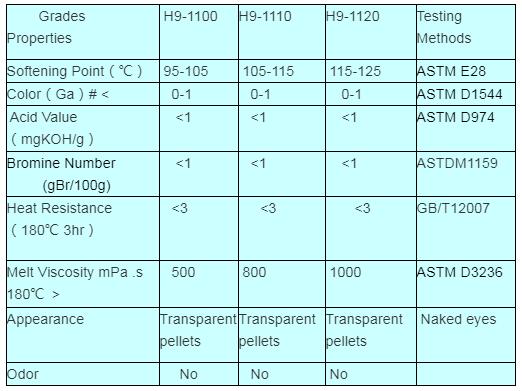 This product is obtained from hydrogenation of melted light color C9 petroleum resin. It appears to be water white solid pellet and emits no odor. When molten it appears transparent. It exhibits excellent age resistance and improve the adhesive property. It shows a good compatibility with a wide variety of elastomer including Ethylene Vinyl Acetate (EVA) and styrenic block copolymer such as SIS and SBS, etc.